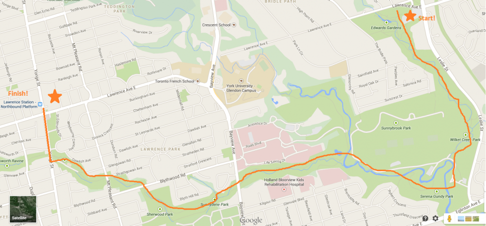 A favourite city nature walk of mine is to pop off the TTC and start at the Toronto Botanical Garden. Head south through Wilket Creek Park, Sunnybrook Park, Serena Grundy Park, Sunnydene Park, Sherwood Park, Blythwood Park and end at Alexander Muir Park. You can then hop back on the TTC at Lawrence Station. With the exception of some street crossing, you’d barely know you were in the city! In the fall this walk is amazing. There are tons of different tree species showing off their autumn colours and some babbling brooks to enjoy as well. I have also done this walk on a snowy day and it was amazing!