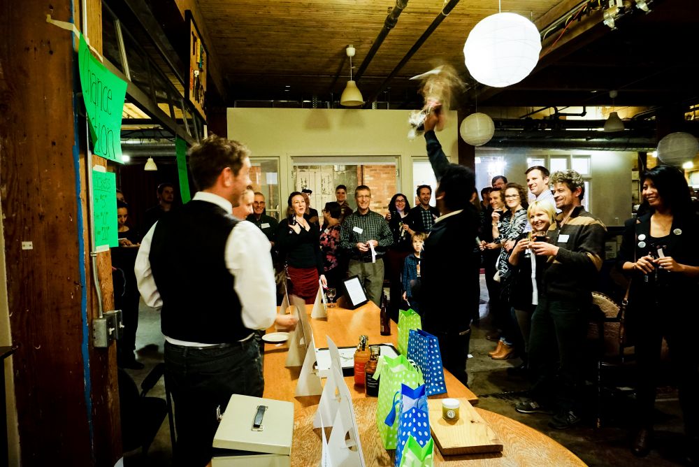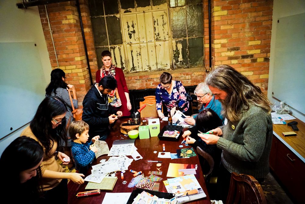 This year’s activities were a big hit! The very poplar button making station was a room to get creative and make your own unique pin-back buttons with a variety of templates, prints, recycled books and magazines to choose from. Over in the gift-tag making room, LEAFers were busy deciding on their favourite leaf stamps for their hand-made personalized tags to polish off their holiday gifts.