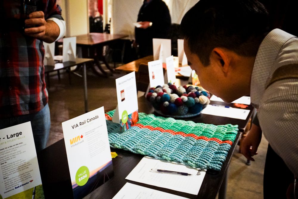 Many tested their luck at the chance auction. One of our volunteers, Ayaz, celebrates winning the Burberry scarf!