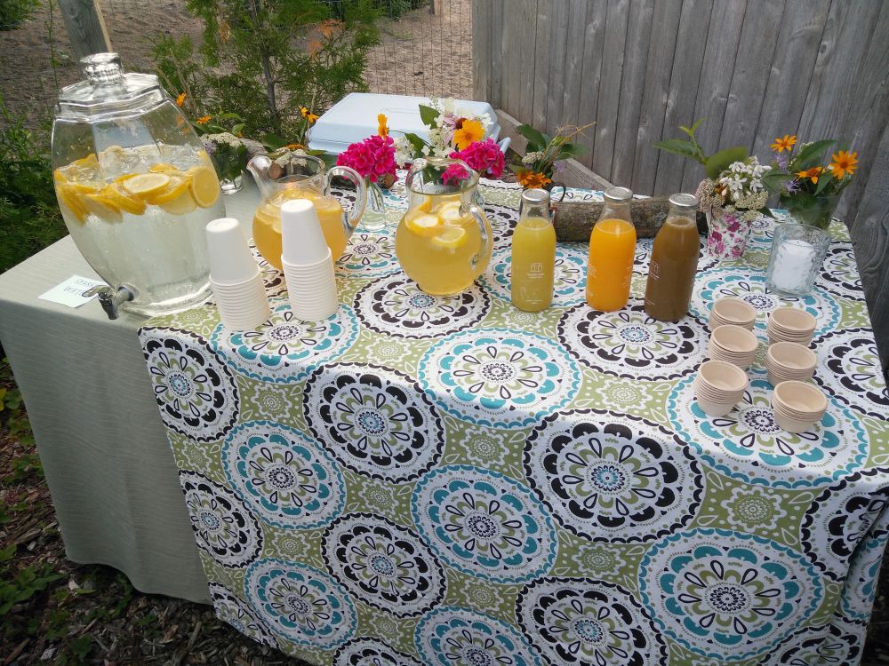 Food and drinks for the party were generously provided by several local businesses. Fiesta Farms provided a variety of snacks, and Starbucks donated their delicious Iced Passion herbal tea. Biscotti from Leah’s and chocolate from Chocosol were much appreciated by guests and staff alike! Special mention also goes out to Greenhouse Juice Co., who not only donated a variety of their juices to the party, but whose staff also volunteer regularly at the LEAF Learning Garden.
